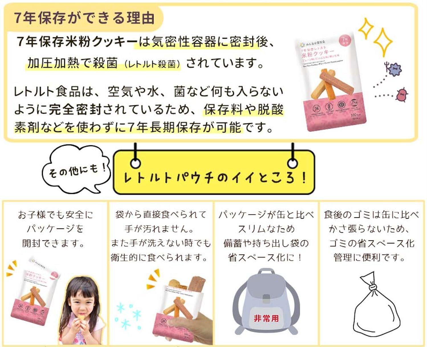 ●7年保存レトルト米粉クッキー:1袋 3本入り(プレーン味1本、にんじん味1本、紫いも味1本)