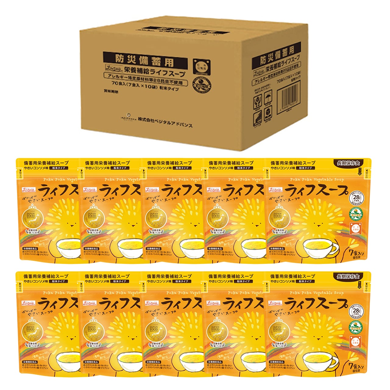 10袋/70食入り【アレルギー・要配慮者対応】備蓄用栄養補給 ライフスープ/野菜コンソメ味